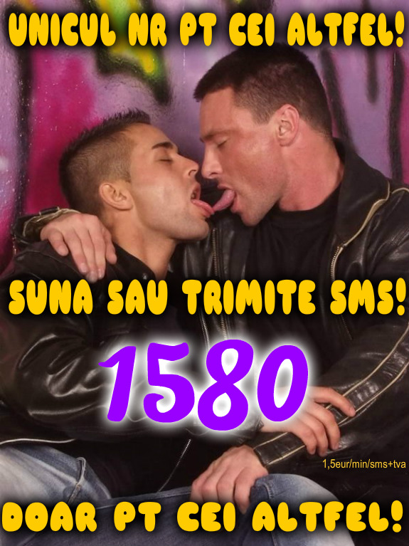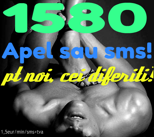 Va place sa faceti altfel de sex? NUMARUL SCURT 1580 va ajuta sa evitati intalnirile traditionale si sa intalniti parteneri open mind. Sunati sau trimiteti un simplu SMS si descrieti cat mai clar nevoile dvs. Veti avea de unde alege pentru o aventura si distractie. Nu uitati sa adaugati numele orasului! Fetishisti, sclavi, gay, tranny, trans acesta este nr vostru de tel si sms! Nu va lasati pacaliti de nr fake, doar 1580 e pt cei ca noi, altfel! Tarif 1,5 eur/min/sms fara tva, fara minori.